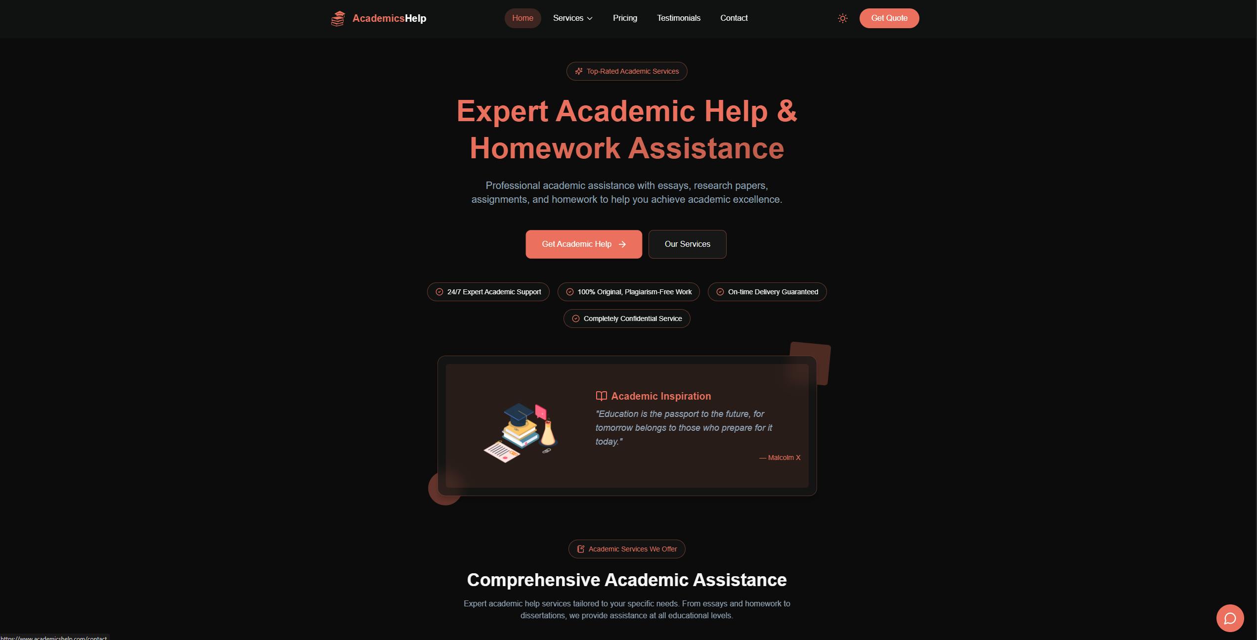 AcademicsHelp is a professional academic assistance platform designed to support students and professionals with a wide range of writing needs. The platform offers expertly crafted, plagiarism-free content including essays, research papers, dissertations, case studies, and more. With a team of qualified native-speaking writers, AcademicsHelp ensures timely delivery, individualized content tailored to your requirements, and thorough research across diverse academic disciplines. The service is committed to reducing academic stress by providing reliable, confidential, and high-quality writing support, helping users achieve their academic goals with ease.
